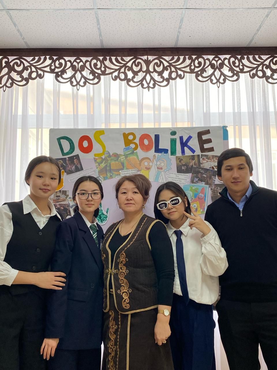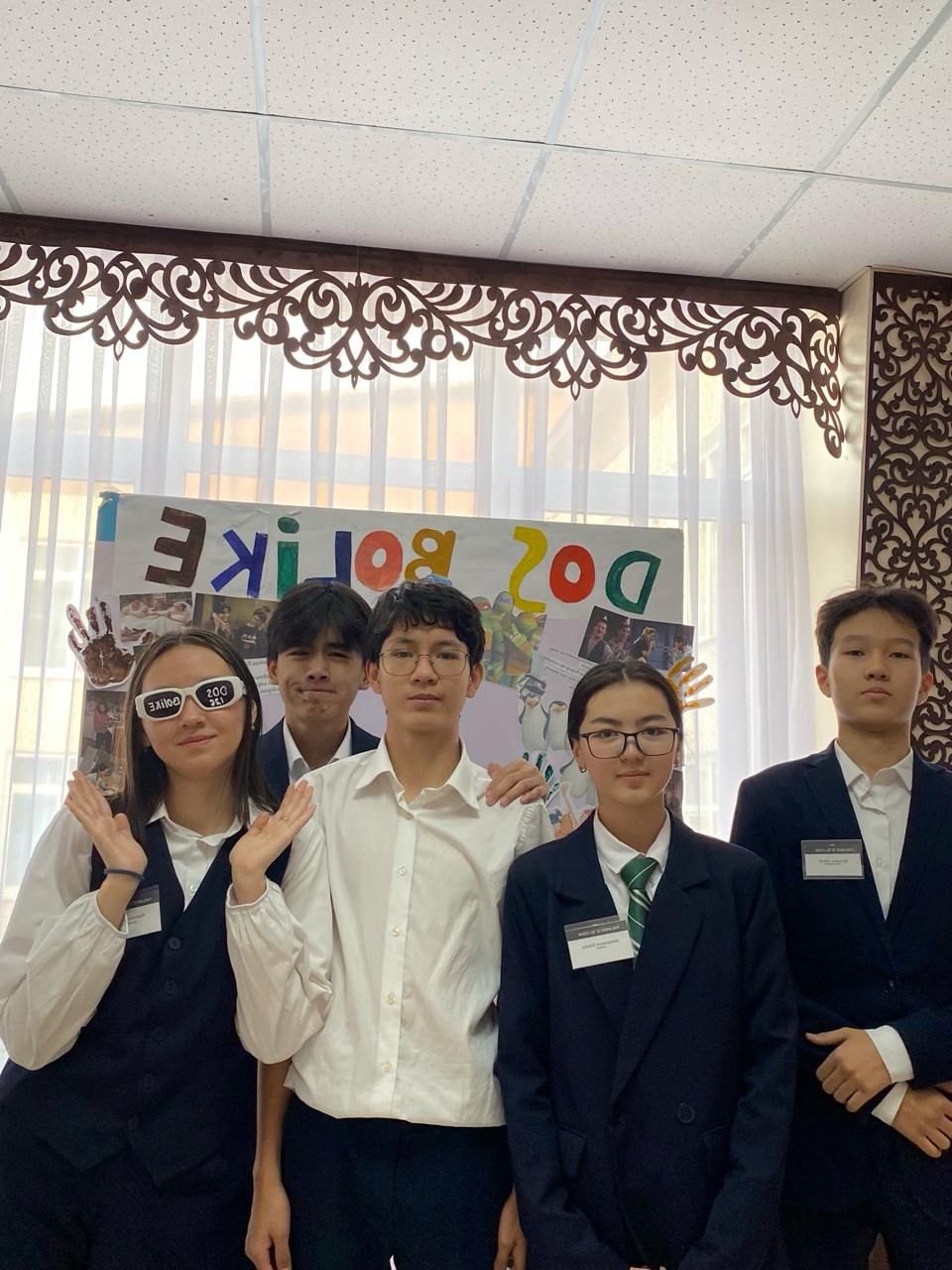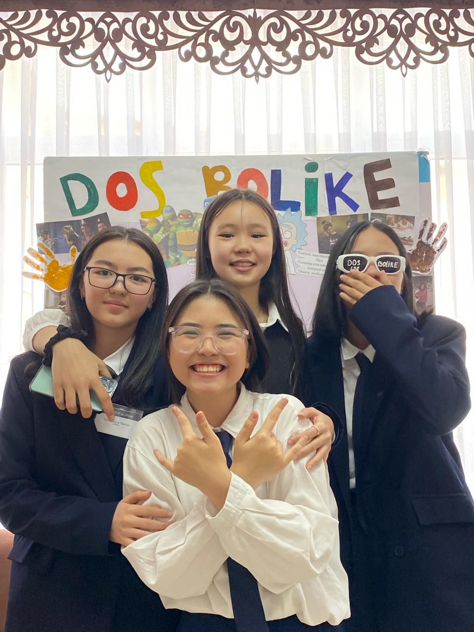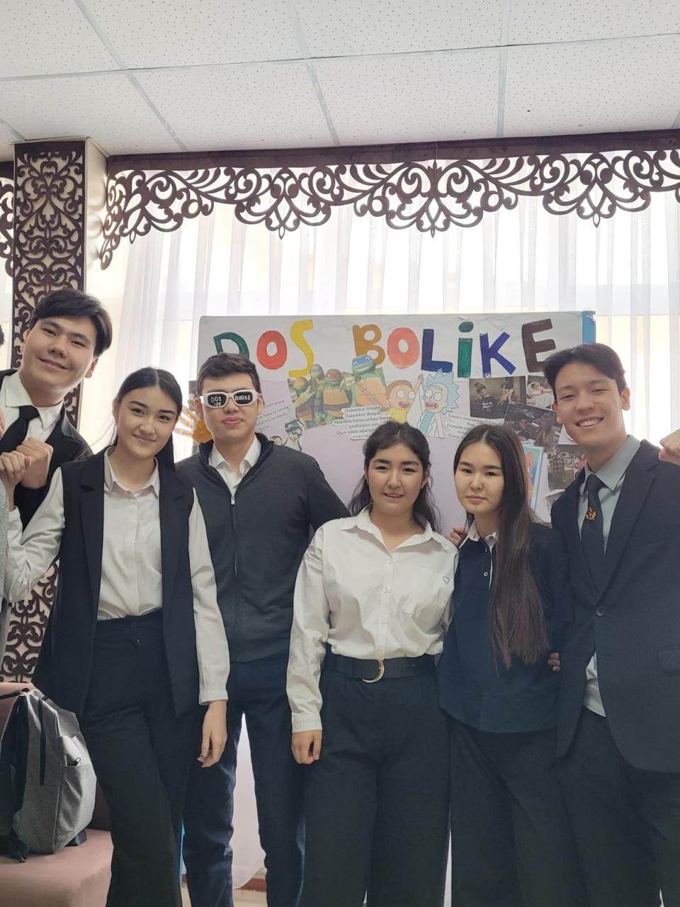 2024 жылда 17 қаңтар - 17 ақпан аралығында өткен «DOSBOLLIKE: ДОСТЫҚ ҚОЛЫН ҰСЫН» акциясына байланысты өзін-өзі басқару ұйымының оқушыларға көңілді көңіл күй сыйлап, сергіту мақсатында жасаған стенді🤍