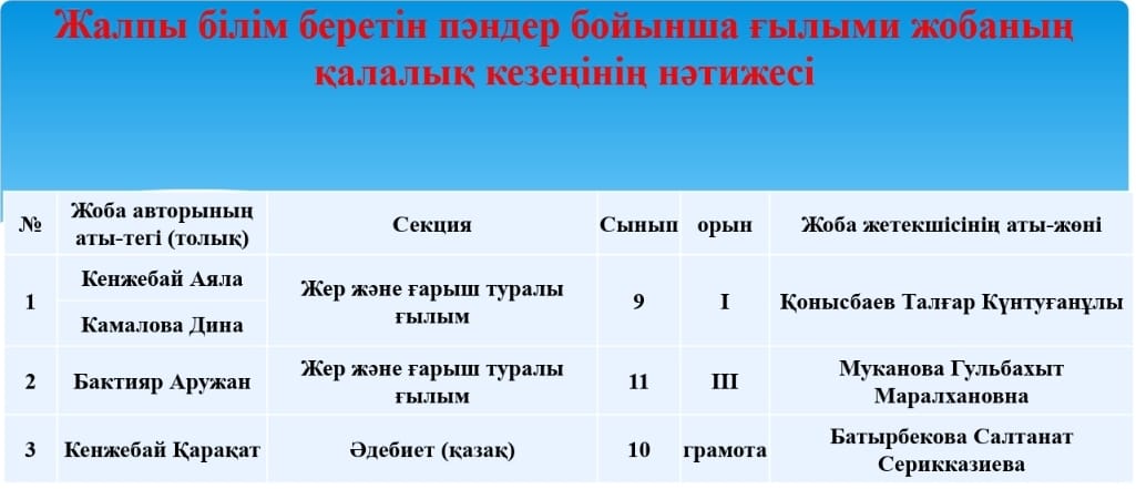 23 ноябрь 2023 0 1 2 3 4 5 Жалпы білім беретін пәндер бойынша қалалық ғылыми жоба Жалпы білім беретін пәндер бойынша қалалық ғылыми жобадан орын алған оқушылар мен пән мұғалімдерін құттықтаймыз!!! Осы беттің QR-коды:QR-код этой страницы: