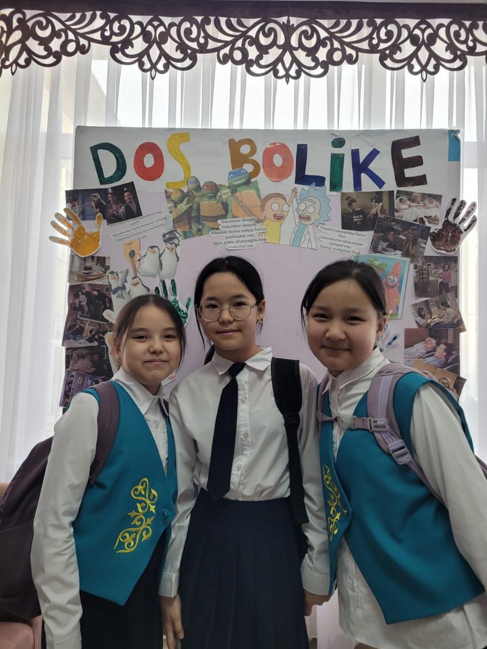 2024 жылда 17 қаңтар - 17 ақпан аралығында өткен «DOSBOLLIKE: ДОСТЫҚ ҚОЛЫН ҰСЫН» акциясына байланысты өзін-өзі басқару ұйымының оқушыларға көңілді көңіл күй сыйлап, сергіту мақсатында жасаған стенді🤍