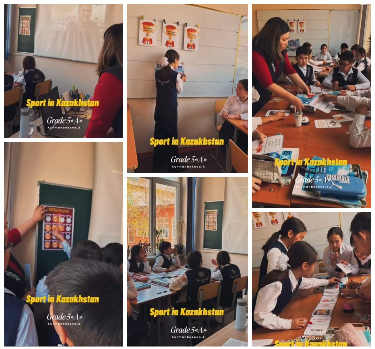5 "А" сыныбымен ағылшын тілі пәні мұғалімі А.А. Курманбекова "Sport in Kazakhstan" тақырыбына ашық сабақ өткізді