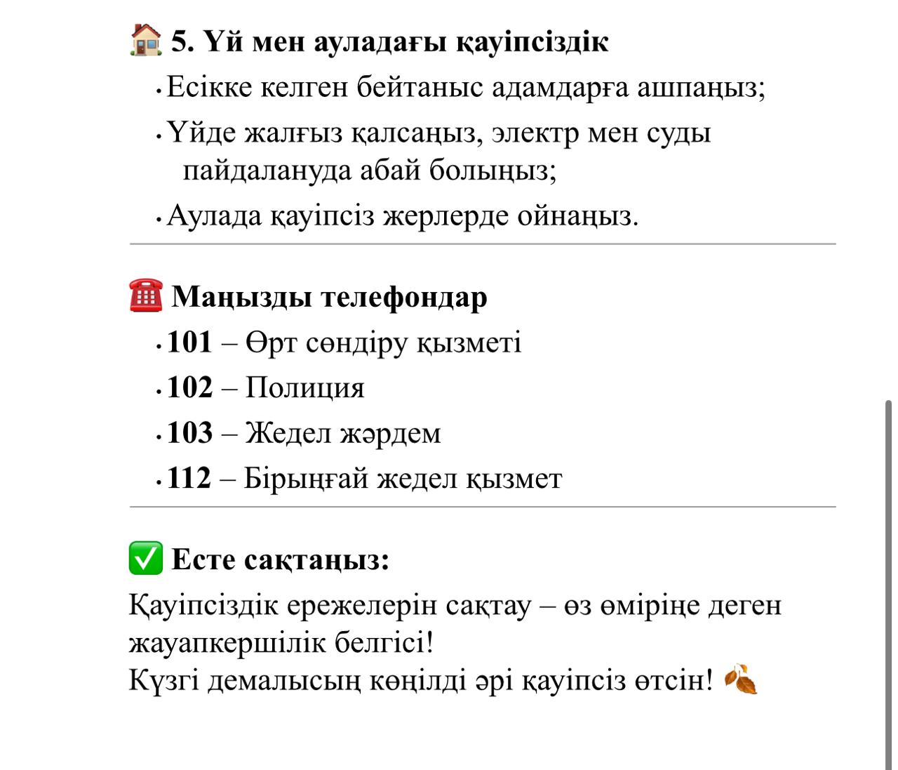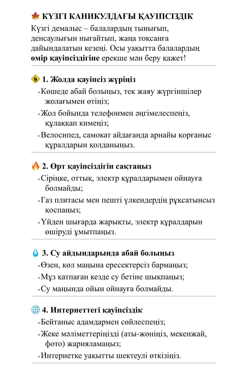 28 октябрь 2025 0 1 2 3 4 5 Күзгі каникул кезіндегі баланың өмір қауіпсіздігі Осы беттің QR-коды:QR-код этой страницы: