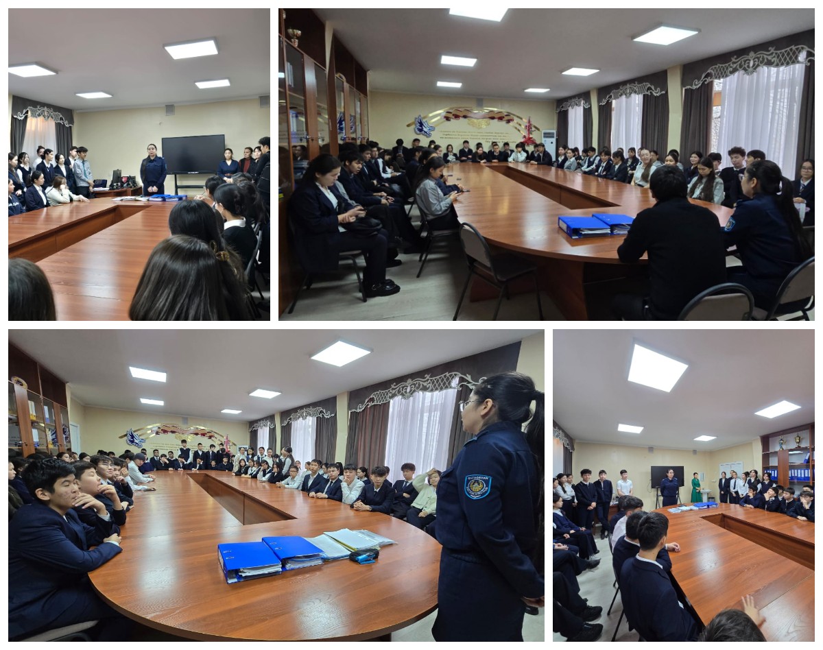 №126 мамандандырылған лицейде Әуезов ауданы ПБ ҚҚБ ЮПБ аға УПИ полиция аға лейтенанты А. М. Арын 9-11 сыныптар арасында құқық бұзушылықтың алдын-алу мақсатында профилактикалық әңгімелесу жүргізді.