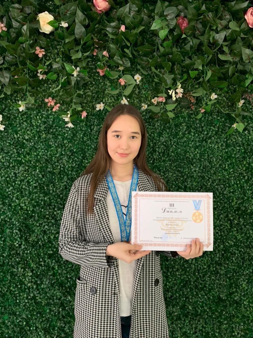 08 апрель 2021 0 1 2 3 4 5 Жалпы пәндер бойынша республикалық ғылыми жоба Жалпы пәндер бойынша республикалық ғылыми жобадан 3 орын. 11 ә сынып оқушысы Ниязбек Әмина, пән мұғалімі Саурбаева Айгуль Осы беттің QR-коды:QR-код этой страницы: