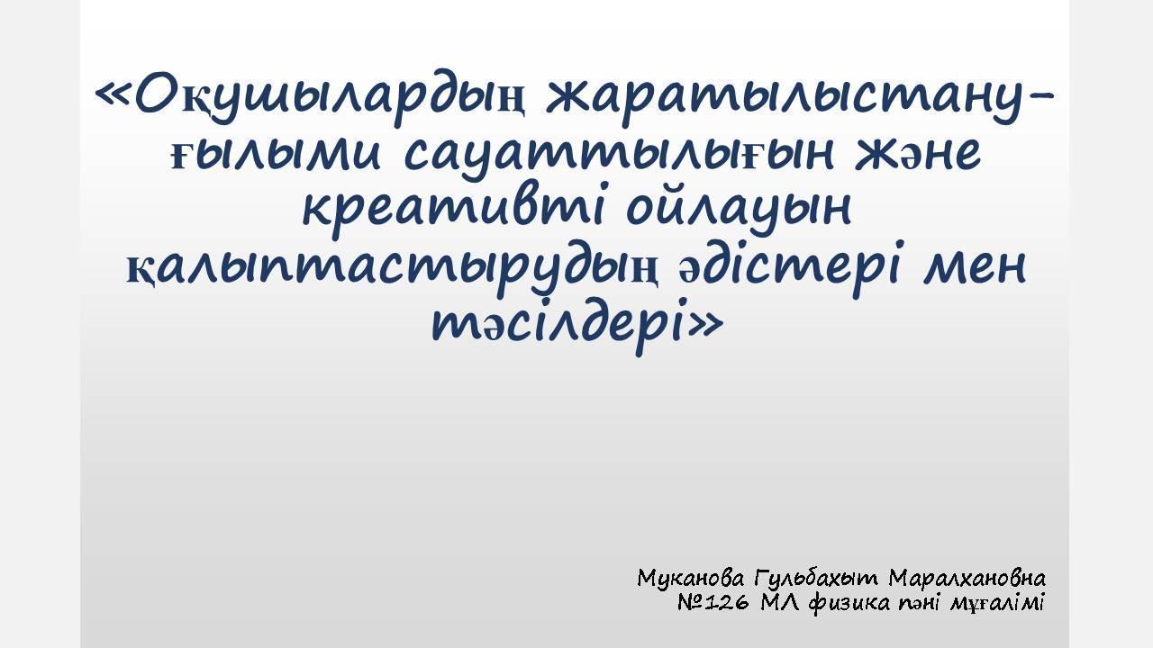 «Оқушылардың жаратылыстану-ғылыми сауаттылығын және креативті ойлауын қалыптастырудың әдістері мен тәсілдері» онлайн-вебинар. Физика пәні мұғалімі Муканова Г. M.