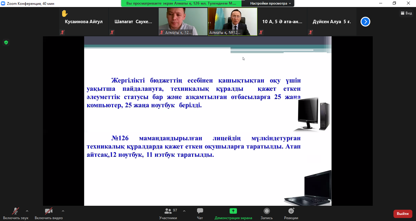 2020-2021 оқу жылының аяқталуын ұйымдастыру мақсатында №126 мамандандырылған лицейде жалпыреспубликалық ата-аналар жиналысы