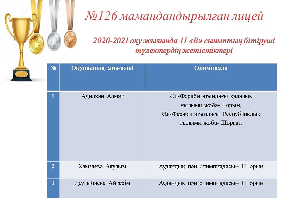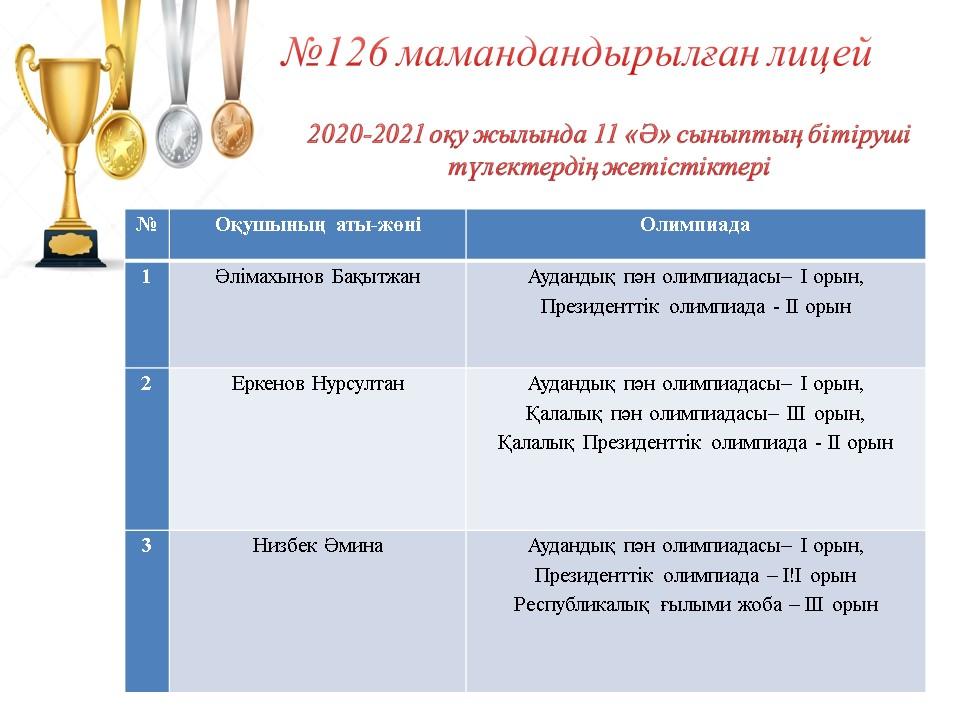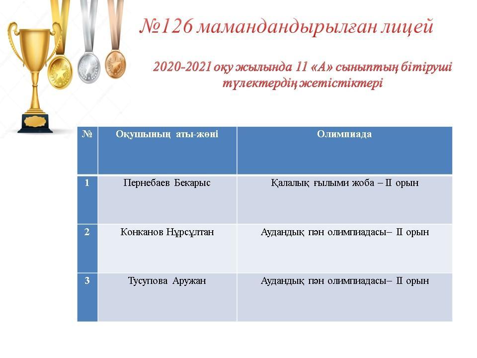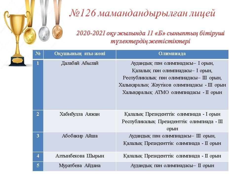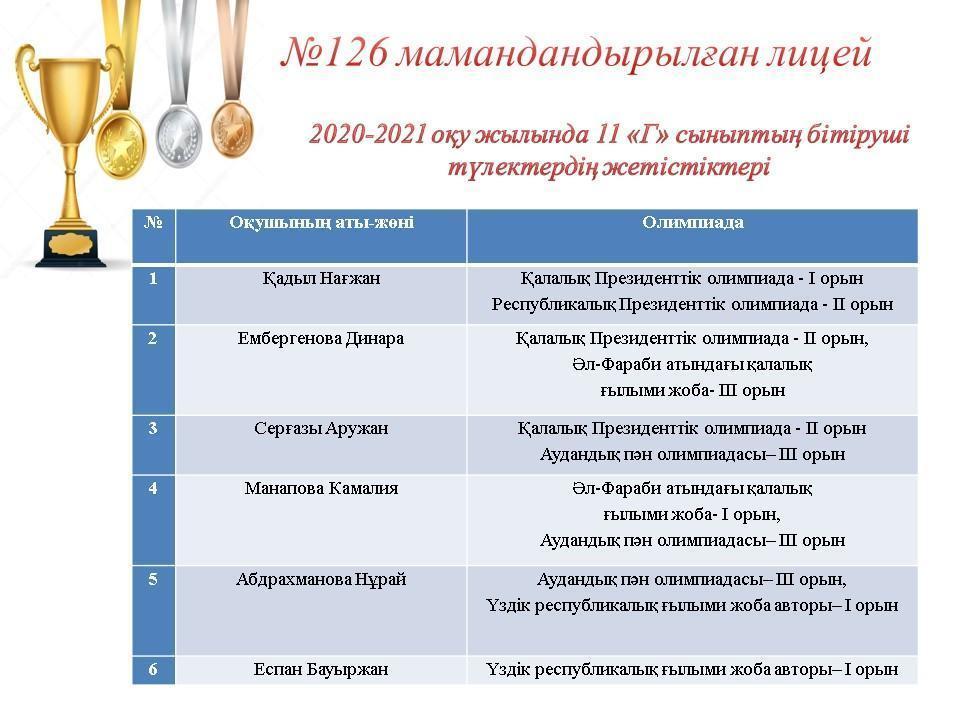 09 июнь 2021 0 1 2 3 4 5 2020-2021 оқу жылында 11 сынып бітіруші түлектердің жетістіктері Осы беттің QR-коды:QR-код этой страницы: