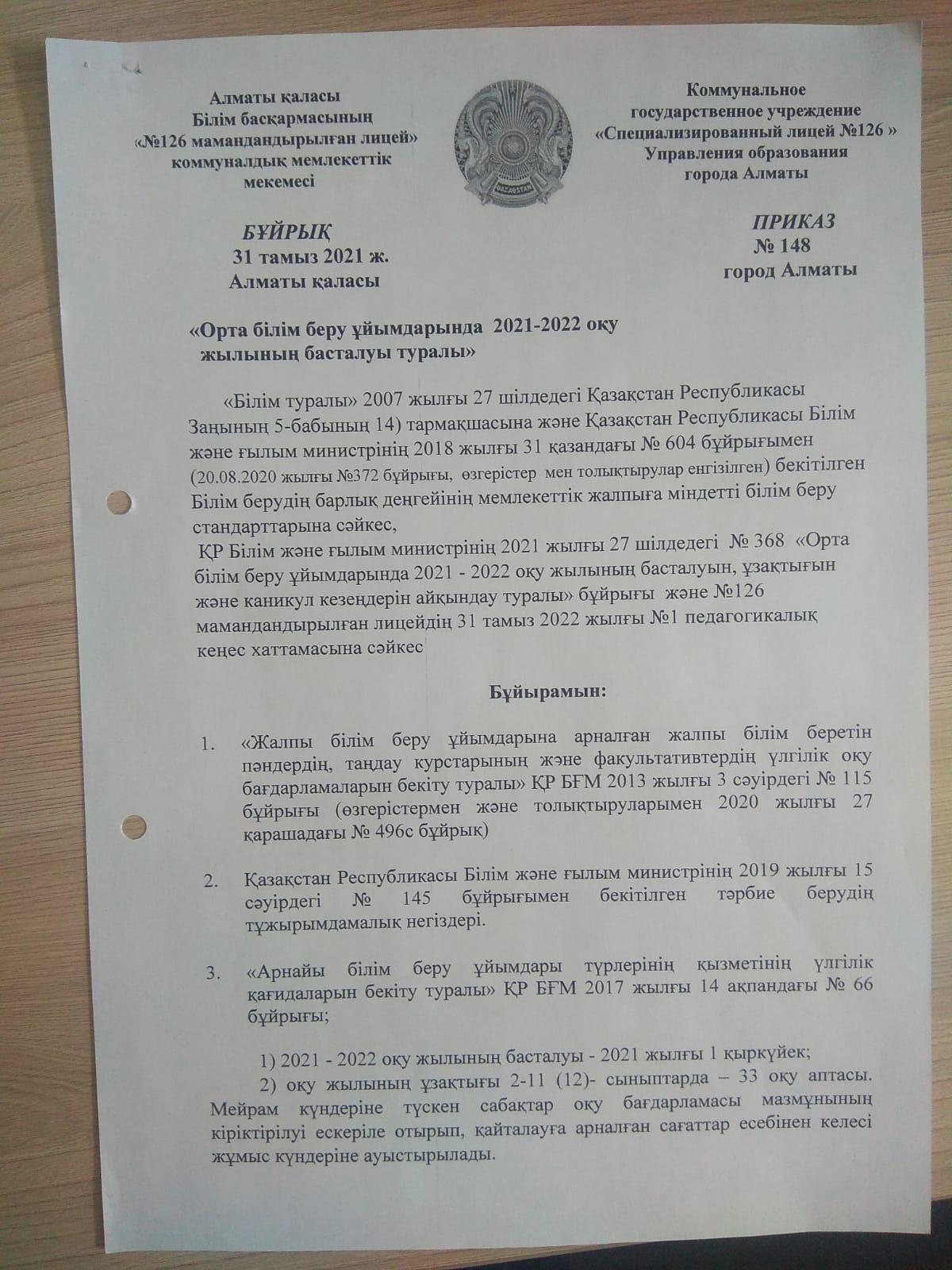 01 сентябрь 2021 0 1 2 3 4 5 2021-2022 оқу жылының басталуы туралы бұйрық Осы беттің QR-коды:QR-код этой страницы: