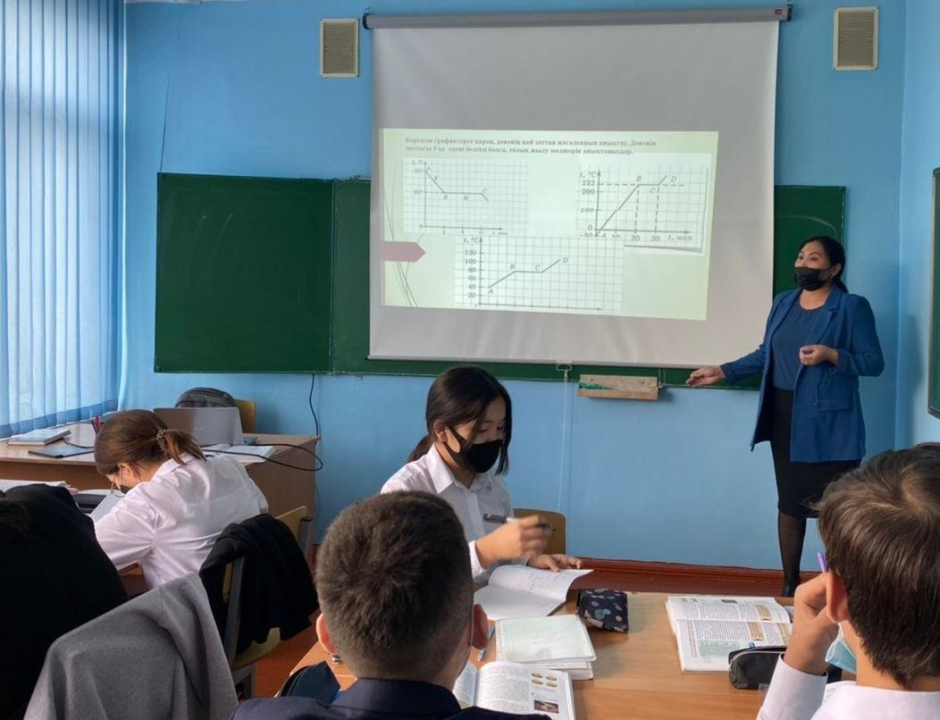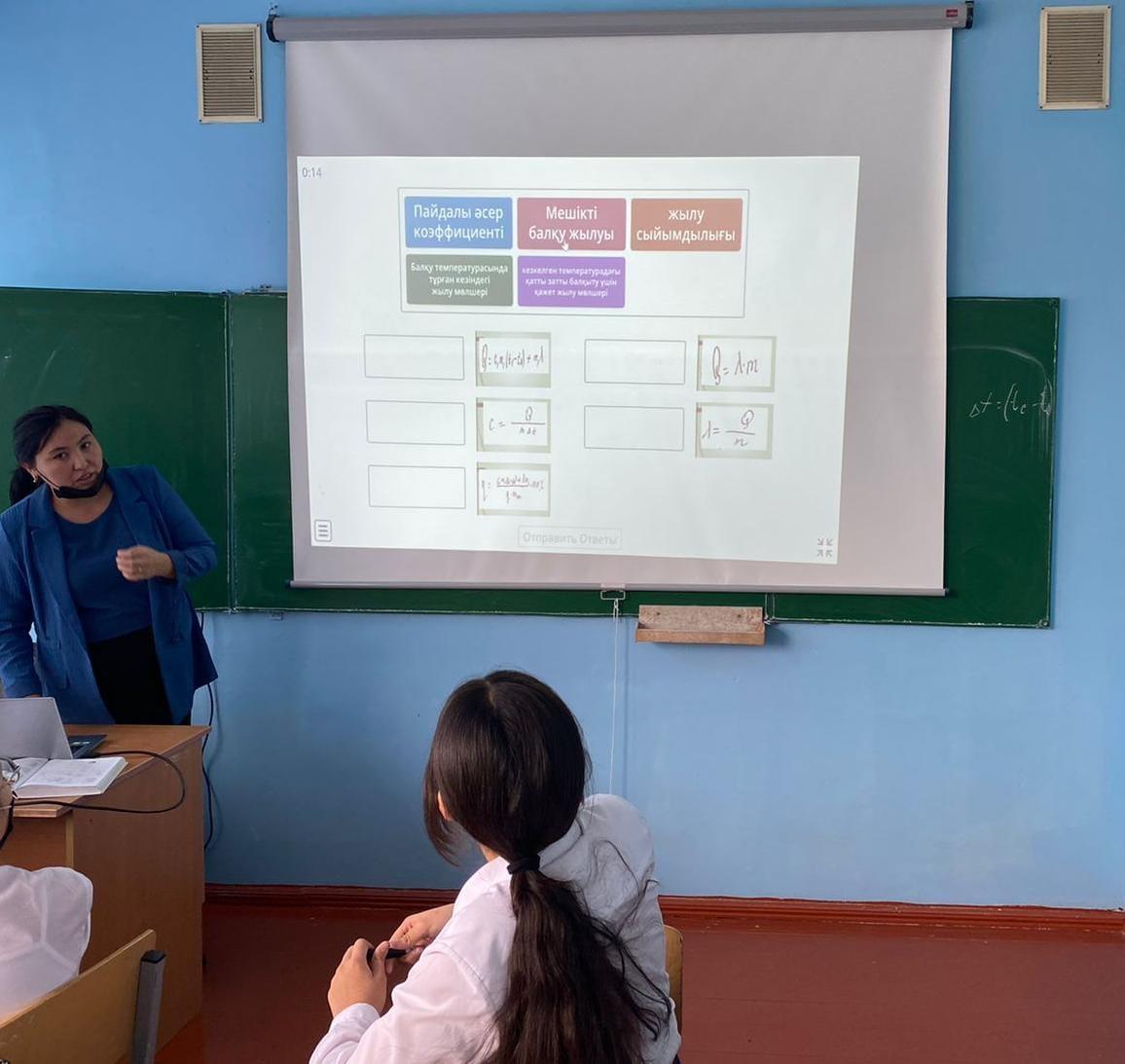 12.10.21 күні 8"Б" сыныбымен "Практика №6 . Қатты денелердiң балқуы және қатаюы, балқу температурасы, меншiктi балқу жылуы" тақырыбында ашық сабақ өткізілді. Сабақ мақсаты : 8.3.2.10 – балқу/кристалдану кезіндегі жұтылатын/бөлінетін жылу мөлшерінің формуласын есептер шығаруға қолдану;