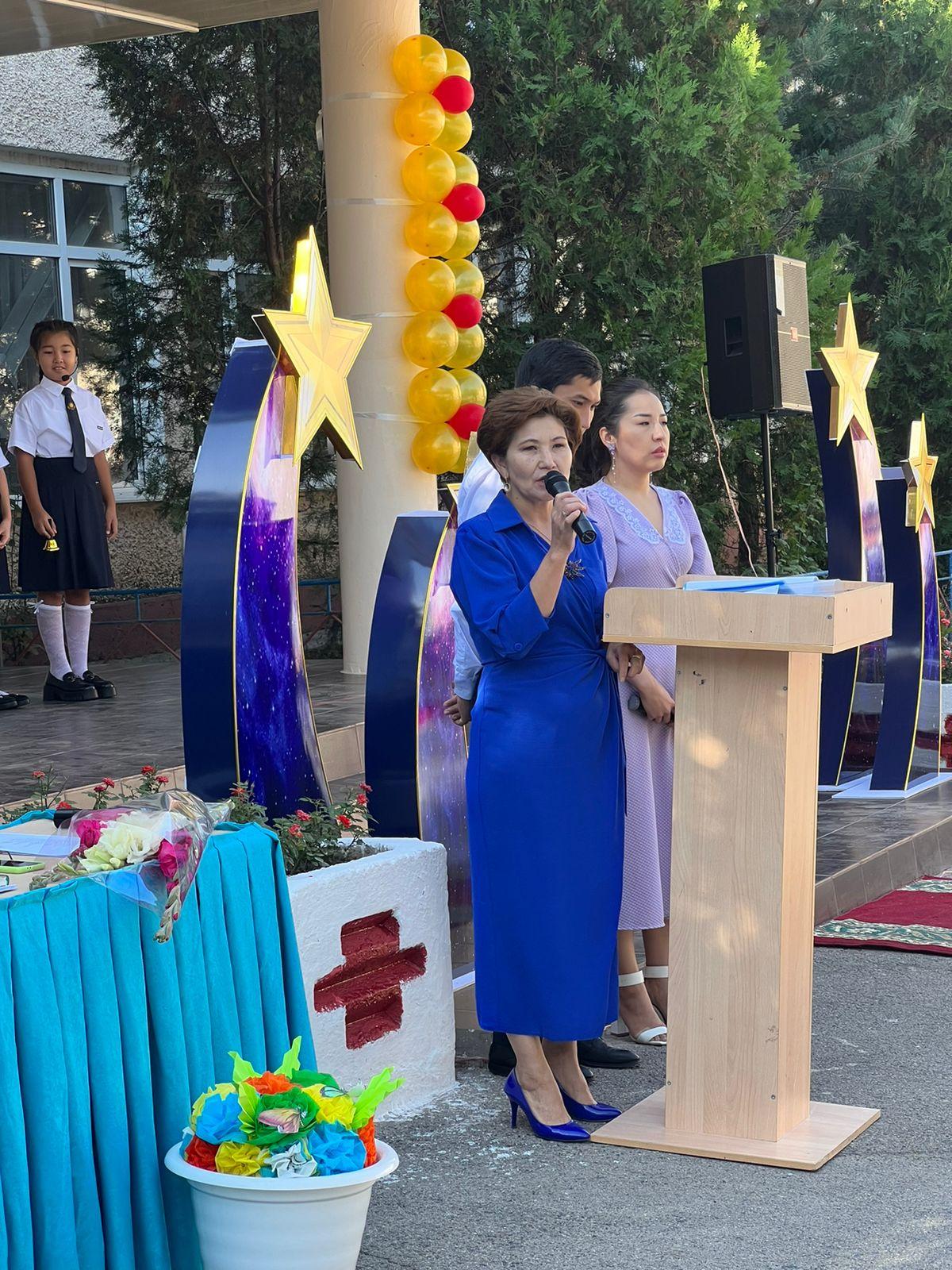 5-сыныптың әдеби монтажы тыңдалды. Алматы қаласы, Әуезов ауданы «Ұстаз» кәсіподақ ұйымының төрайымы Нүсбекова Айгүл Ляззатовна қатысты. Лицей директоры М.М.Тулендиев пен Әуезов ауданы «Ұстаз» кәсіподақ ұйымының төрайымы А.Ляззатовна лицей табалдырығын аттаған бүлдіршіндерді құттықтап, мектеп партасына отырғызды.
