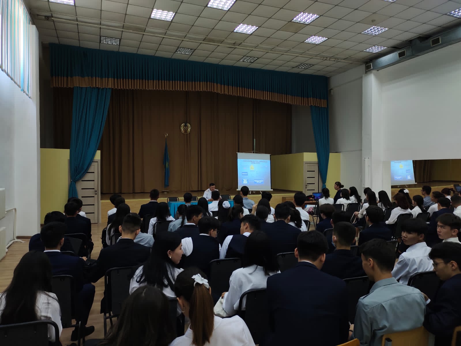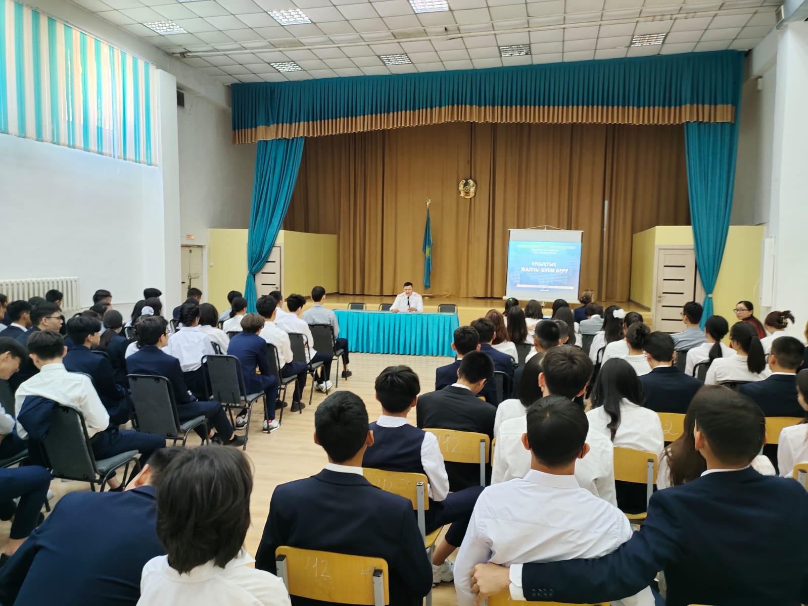 № 126 мамандандырылған лицейде жоғары сынып оқушыларына Алматы қаласы Әуезов ауданы ПБ ӘПБ бастығы полиция подполковнигі Идрисов Абылай Жаскайратұлы Зорлық-зомбылық құрбаны болған жағдайда не істеу керектігі туралы түсіндіру жұмыстарын жүргізіді.