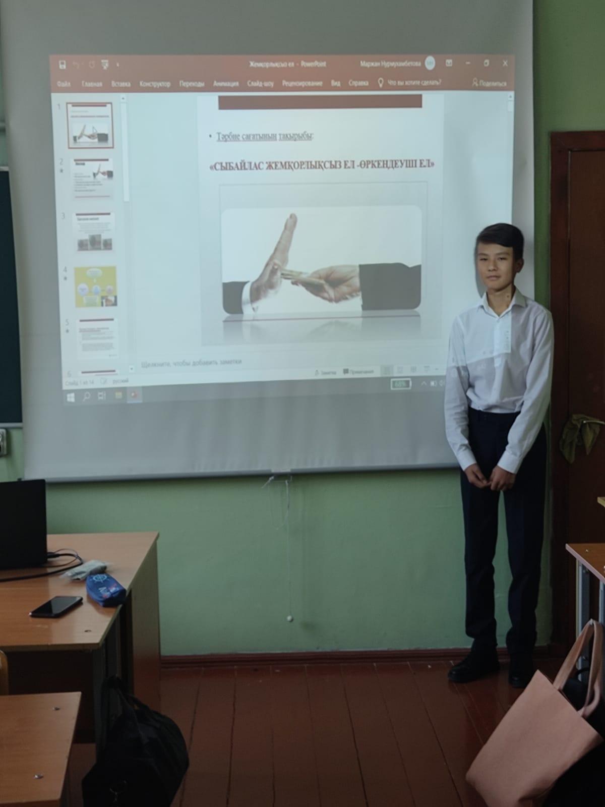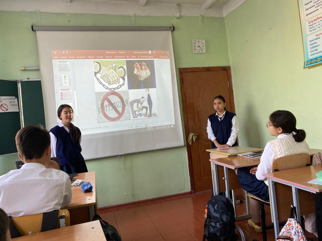 126.alschool » Ақпарат » №126 мамандандырылған лицейде 8-сыныптар арасында ,,Сыбайлас жемқорлықсыз ел-өркендеуші ел” тақырыбында Адалды сынып сағаты ұйымдастырылды.
