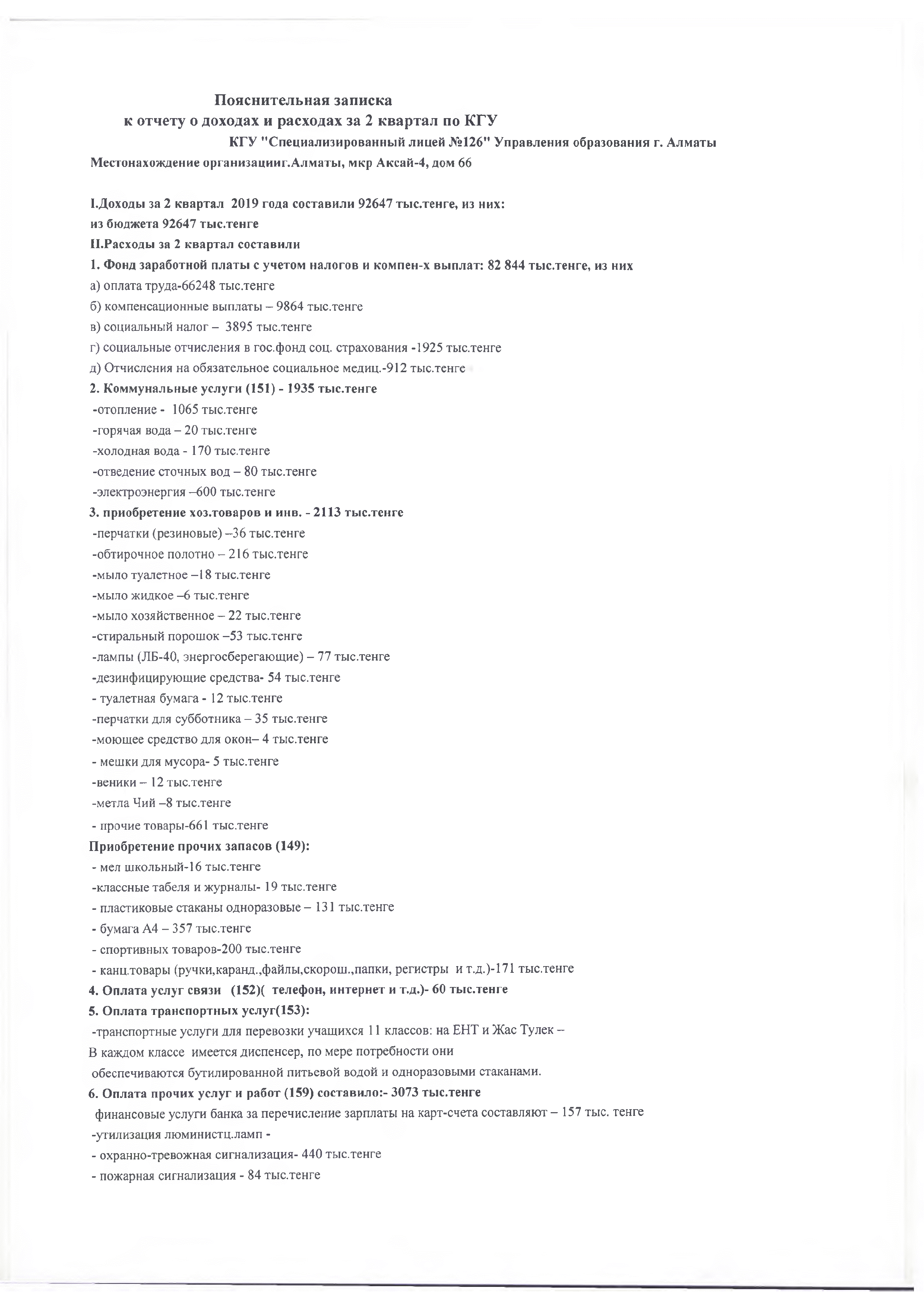 » отчет о доходах и расходах за 2 кв