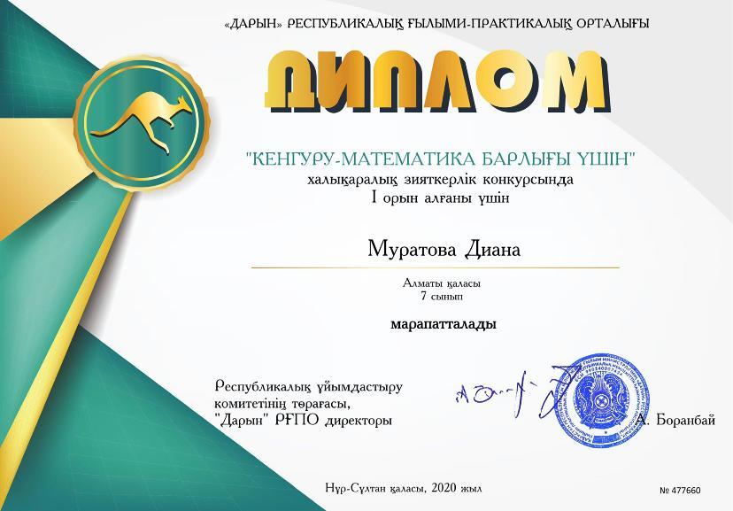 27 январь 2021 0 1 2 3 4 5 "Кенгуру-математика барлығы үшін" халықаралық зияткерлік конкурс жүлдегерлері Осы беттің QR-коды:QR-код этой страницы:
