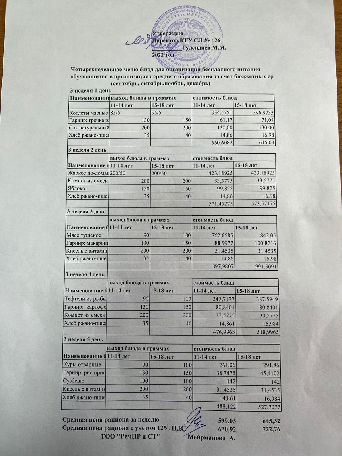 126.alschool » Тамақтандыру » Төртапталық ас мәзірінің үшінші аптасы (қыркүйек ,қазан,қараша, желтоқсан) 2022-2023 оқу жылы