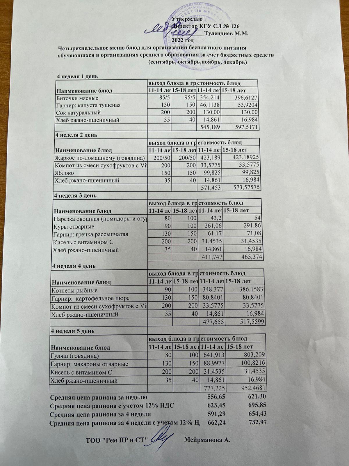 126.alschool » Тамақтандыру » Төртапталық ас мәзірінің төртінші аптасы (қыркүйек ,қазан,қараша, желтоқсан) 2022-2023 оқу жылы